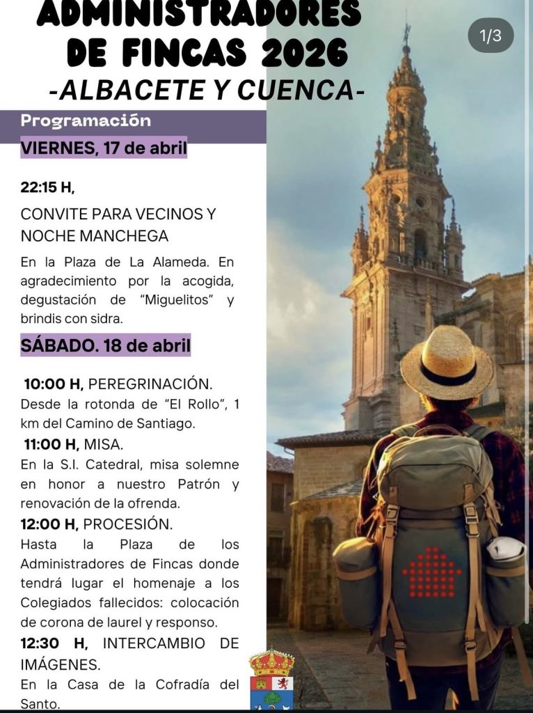 Administradores de fincas 2026 Albacete y Cuenca un encuentro que une tradición ,convivencia y compromiso . dos días para compartir , recorrer juntos el camino. Desde la noche manchega hasta la peregrinación , la misa la procesión , cada momento esta pensado para fortalecer la comunidad y celebrar nuestras raíces .
