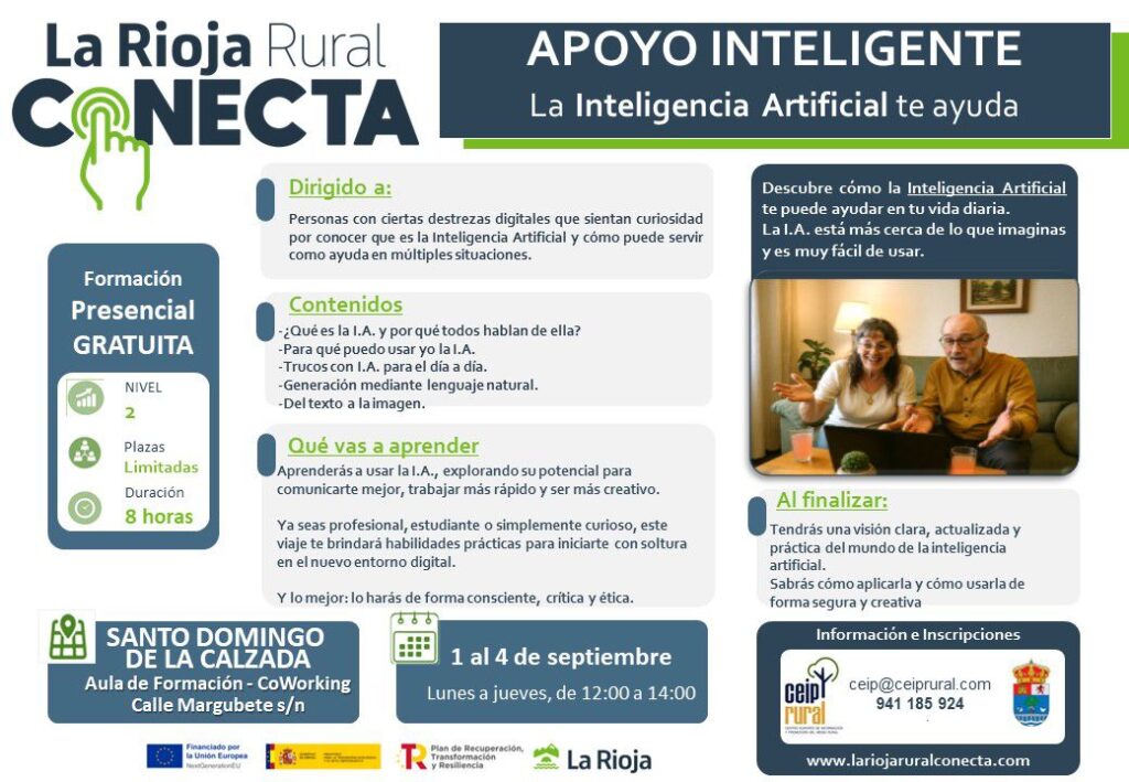 Tras el éxito del curso anterior, del 1 al 4 de septiembre, de 12:00 a 14:00 h., se va a realizar el segundo curso de Inteligencia Artificial (Nivel 2) en Santo Domingo de la Calzada.